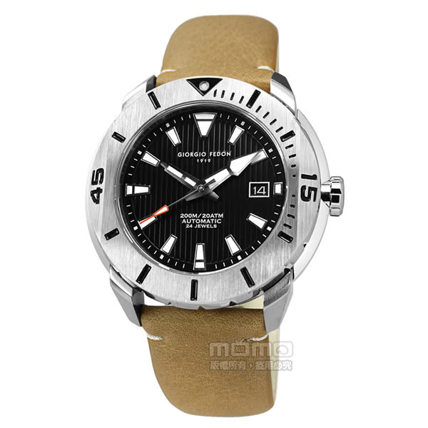 ↓↓↓【GIORGIO FEDON 1919】機械錶 潛水錶 自動上鍊 藍寶石水晶玻璃 防水200米 真皮手錶 黑x土黃 47mm(GFCH006)限量特惠的優惠按鈕↓↓↓