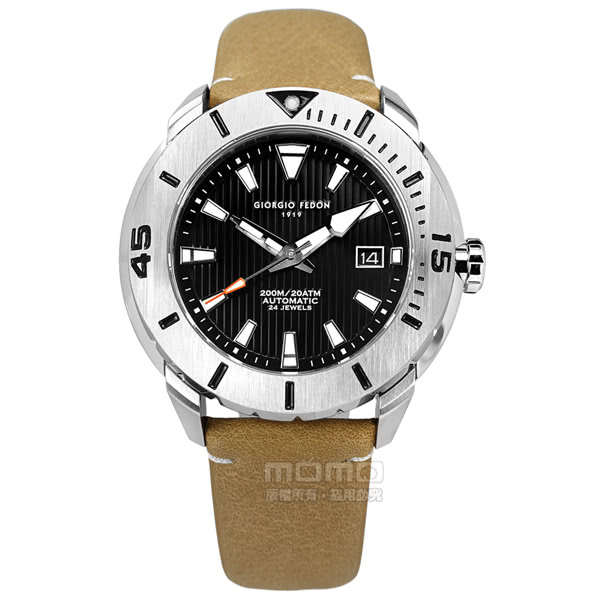 PTT鄉民限量,團購,限時,週年慶,【GIORGIO FEDON 1919】機械錶 潛水錶 自動上鍊 藍寶石水晶玻璃 防水200米 真皮手錶 黑x土黃 47mm(GFCH006)禮物,優惠,特價,開箱,比價【GIORGIO FEDON 1919】機械錶 潛水錶 自動上鍊 藍寶石水晶玻璃 防水200米 真皮手錶 黑x土黃 47mm(GFCH006),活動,好評,推薦